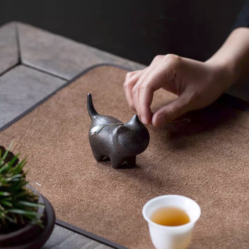Rooted in centuries-old Chinese gongfu tea culture, a cha chong (tea pet) is a beloved small decorative companion for your tea table. This unique handcrafted cat tea pet combines playful, minimalistic design with traditional craft, making it a charming addition to any tea ritual or home space. Its cute, plump silhouette with a curled tail brings a warm, lighthearted touch to every moment of tea drinking.