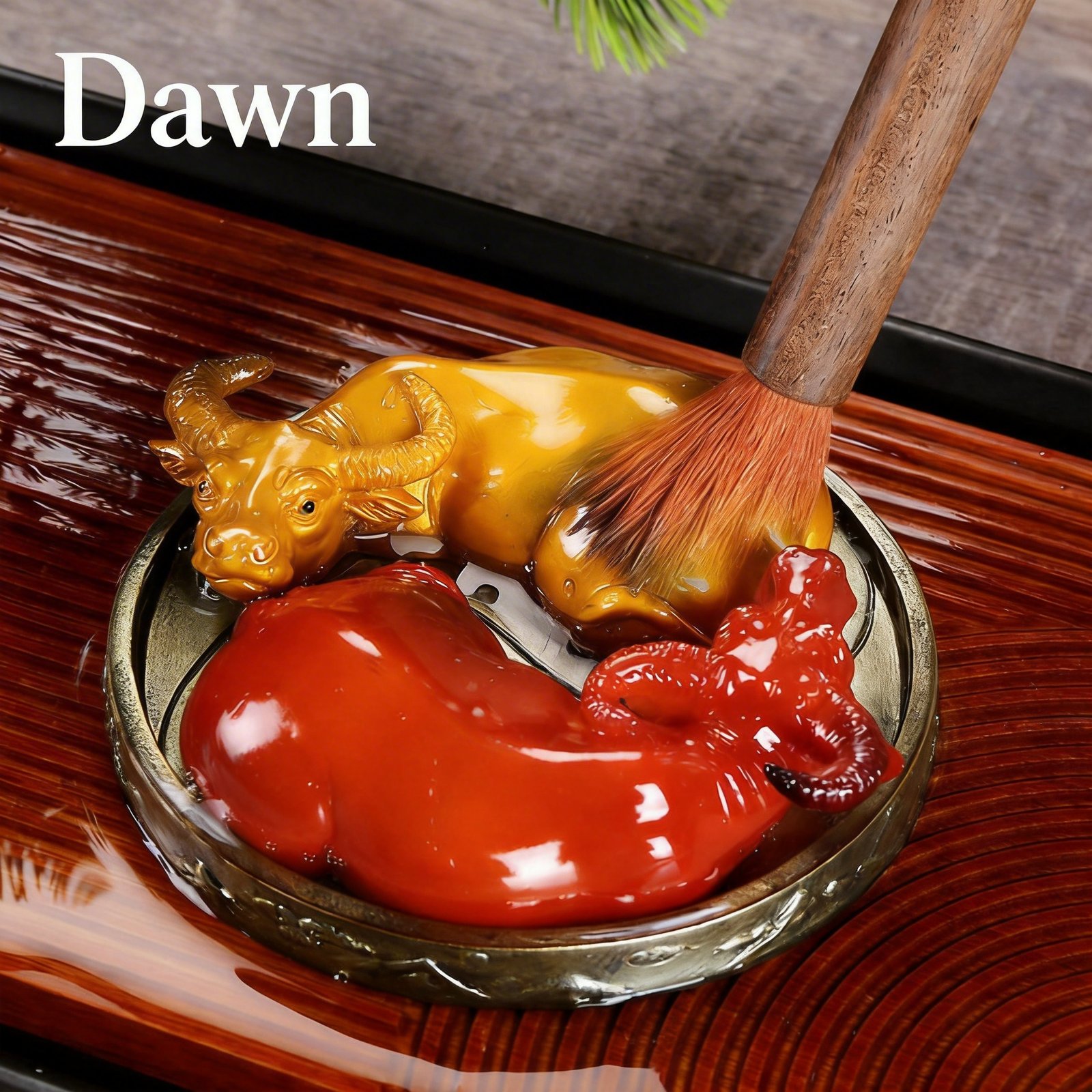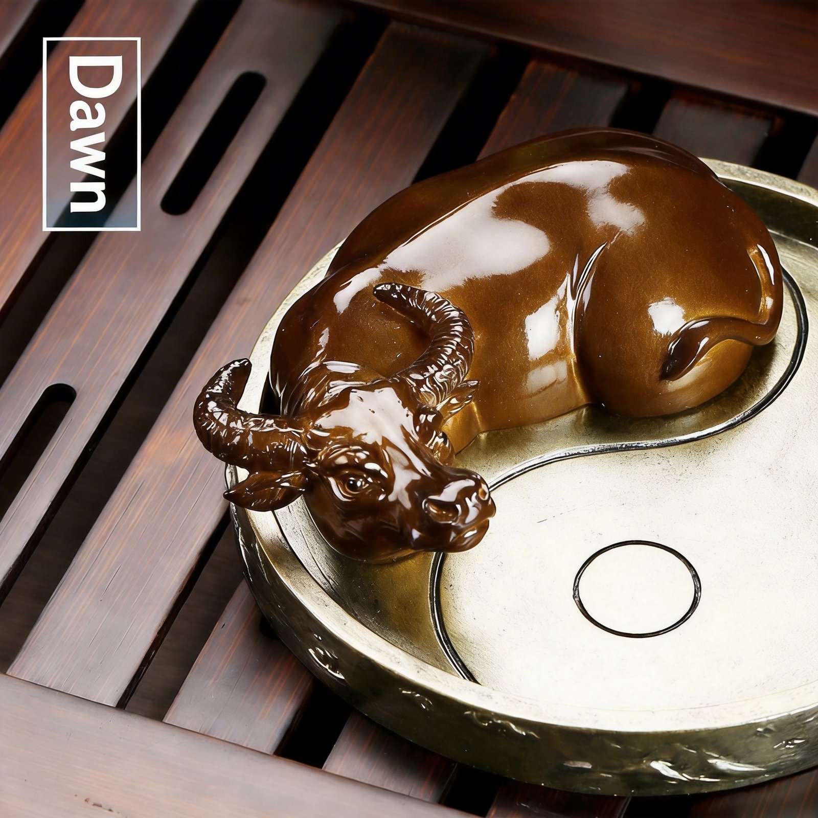 - Set includes 2 ox tea pets and 1 circular metal yin yang display base
