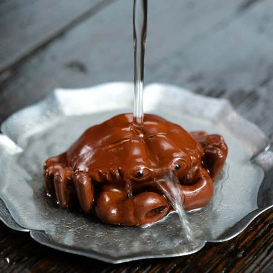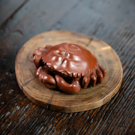 Every detail of this crab tea pet is carefully hand-sculpted by skilled artisans, from the textured natural crab shell and curved, lifelike pincers to the subtle eye details. The result is a vivid, eye-catching piece that looks like a tiny live crab resting on your tea tray.