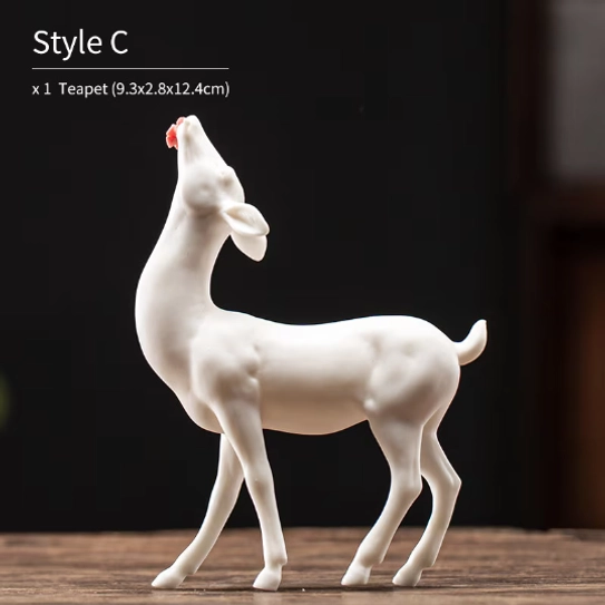 Tea pets are beloved decorative figurines with deep roots in traditional Chinese gongfu tea culture. Kept on your tea table, these charming pieces are ‘nourished’ with tea during every brew, developing a unique warm patina over years of use that becomes entirely one-of-a-kind. This handcrafted white ceramic deer tea pet brings both cultural symbolism and elegant style to any tea ritual or living space.