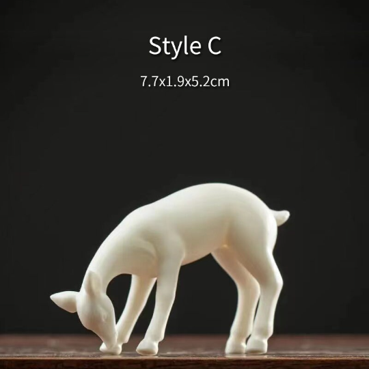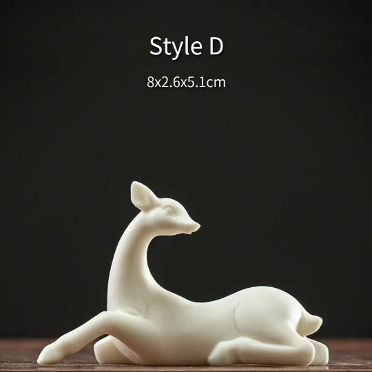 Elegant matte white ceramic deer tea pet, blending traditional Chinese auspicious symbolism with minimalist design. Perfect for tea table decoration, micro-landscape arrangement, and as a thoughtful gift for tea lovers and home decor enthusiasts.