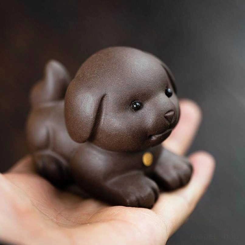 Tea pets (chá chǒng) are a cherished traditional part of Chinese gongfu tea culture, small decorative figurines placed on your tea tray to be ‘nourished’ with leftover tea over time. This adorable handcrafted dog tea pet is made from 100% authentic Yixing zisha purple clay, sourced directly from Yixing, Jiangsu, China. With regular tea pours, it will gradually develop a one-of-a-kind glossy patina that’s unique to your usage, turning it into a deeply personal tea accessory you’ll cherish for years.