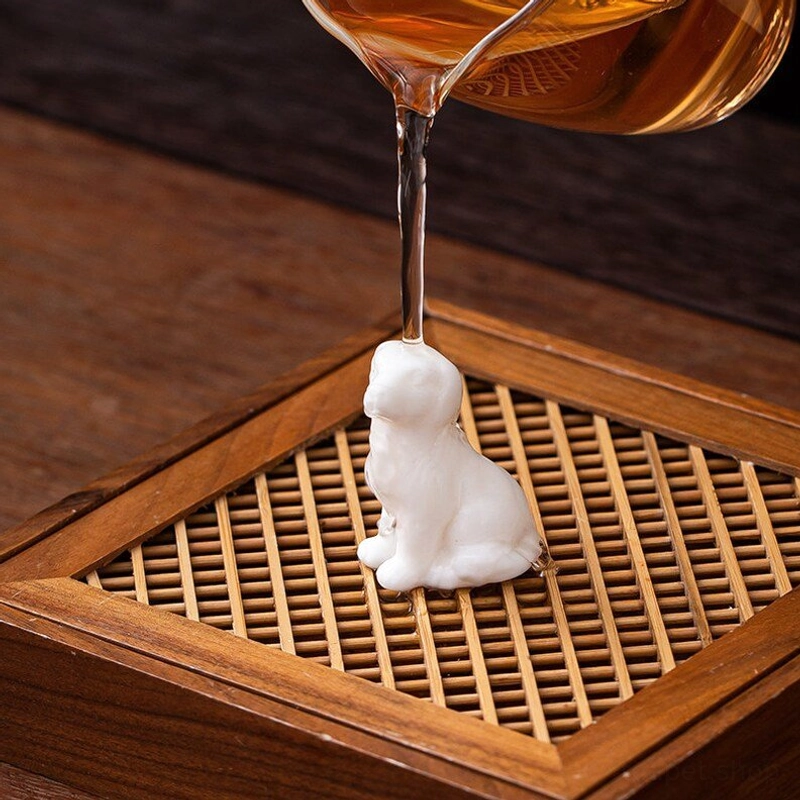 Nurturing a tea pet is a simple, relaxing ritual that adds depth to your tea time: during your tea sessions, just pour leftover warm tea over the figurine, and gently wipe its surface with a soft tea cloth occasionally. Over weeks and months of regular use, the white porcelain will gradually develop a subtle warm amber patina unique to your tea drinking habits, turning this little dog into a special keepsake that grows with you.