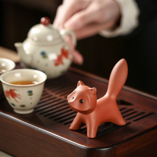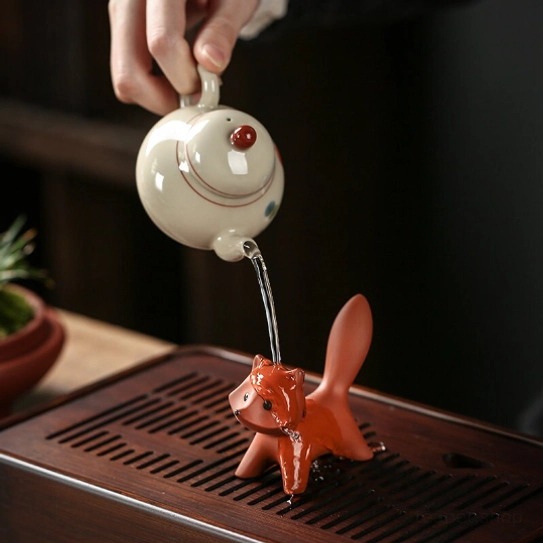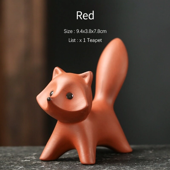 Caring for your tea pet is easy: just pour your leftover warm tea over it during your tea sessions, or gently wipe it with a damp tea brush. Never use soap or chemical cleaners—these will clog the porous clay and stop it from developing that beautiful unique patina. Over time, your fox tea pet will develop a rich, warm sheen that is completely one-of-a-kind, just like your tea journey.