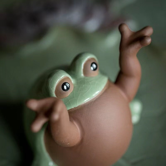 In traditional Chinese tea culture, the frog (wa in Chinese pinyin) is a beloved symbol of good fortune, prosperity, and connection to nature — its cheerful image is believed to bring calm and joy to daily tea rituals. This handcrafted ceramic frog tea pet blends time-honored tea pet culture with a playful, modern design, making it a functional and heartwarming addition to any tea space.