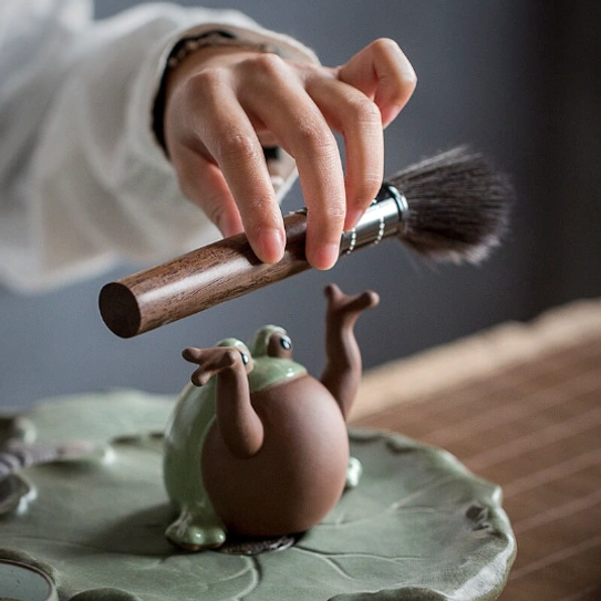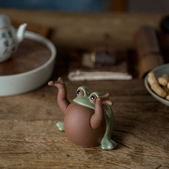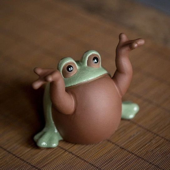 Unlike standard decorative tea pets, this frog tea pet works double duty: its raised open arms are perfectly shaped to hold your tea brush, keeping your tea tools tidy and within reach while you prepare tea. It keeps your tea table organized while adding a playful touch that always gets compliments from guests.