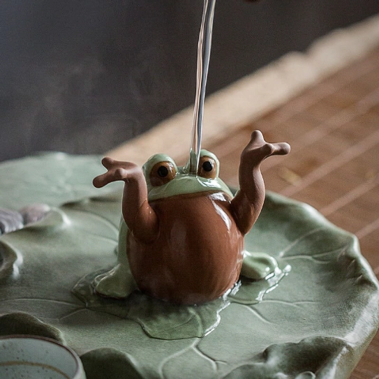 Our cartoon-style frog design features big lively eyes, soft rounded lines, and natural earthy green and brown color pairing that blends seamlessly with both modern and traditional tea decor. It’s cheerful without feeling clunky, and the perfect size to fit on any tea tray without taking up too much space.
