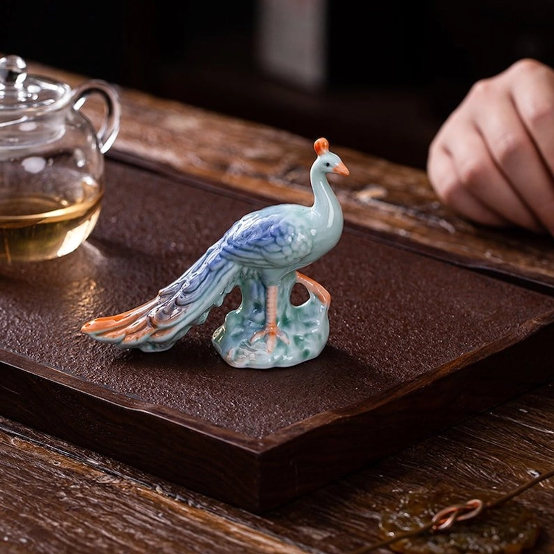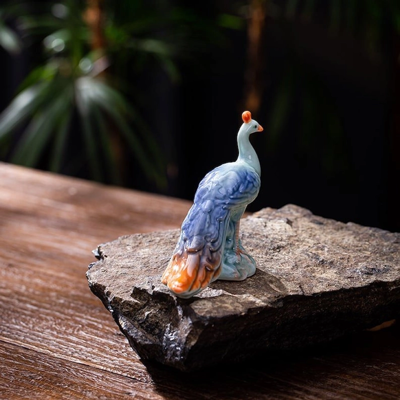 In Chinese culture, the peacock is one of the most auspicious symbols, representing good fortune, prosperity, natural beauty, and peaceful new beginnings. Its vibrant feathers are said to attract positive energy and bright future prospects, making this peacock tea pet a lucky accent for your home or tea room.