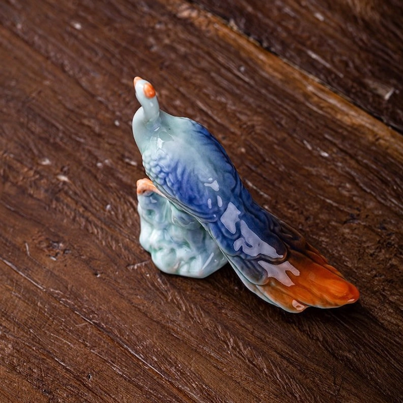 A tea pet (chá chóng) is a beloved traditional decorative figurine for Chinese gongfu tea ceremonies, placed on the tea tray to enrich your tea experience. This exquisite handcrafted ceramic peacock tea pet is more than just decor—it is a culturally meaningful piece that grows more unique with time, making it a special addition to any tea collection or home space.