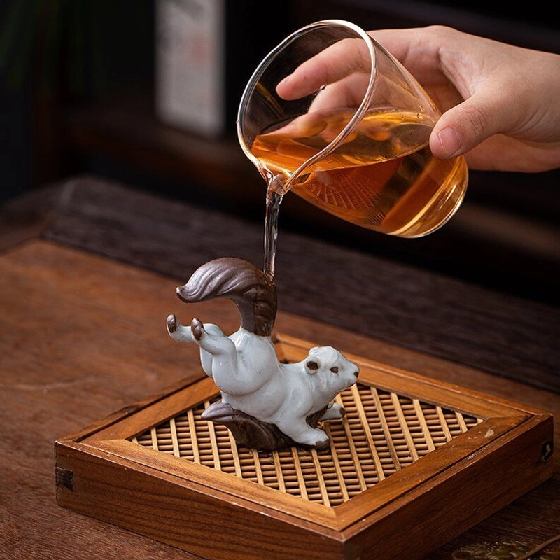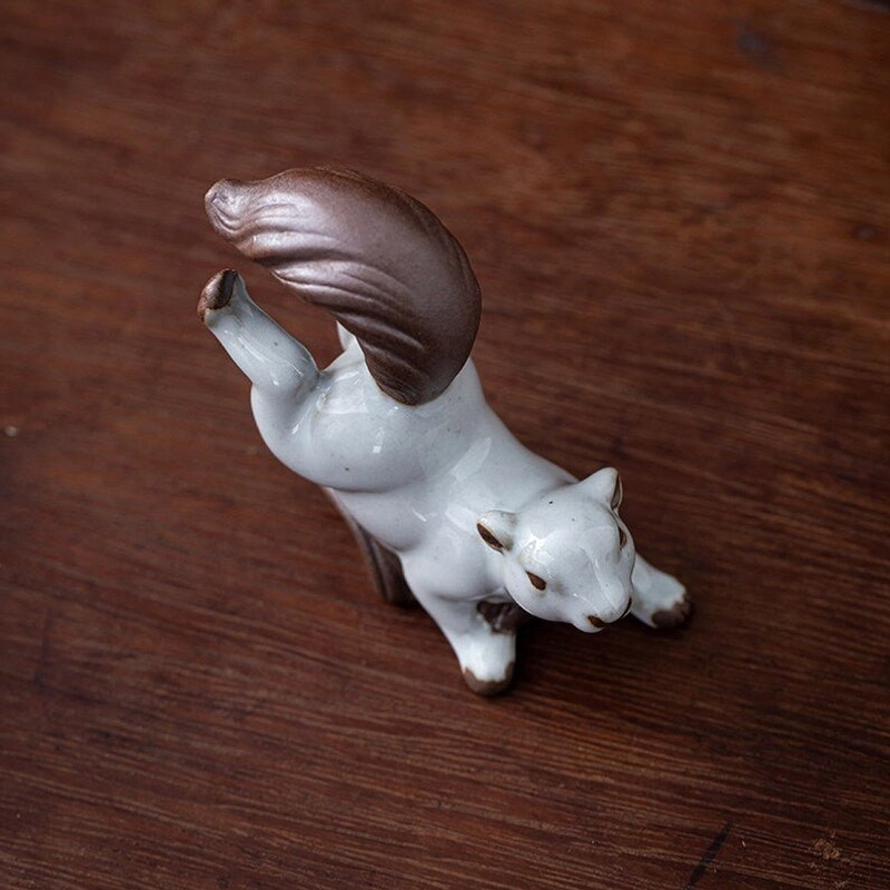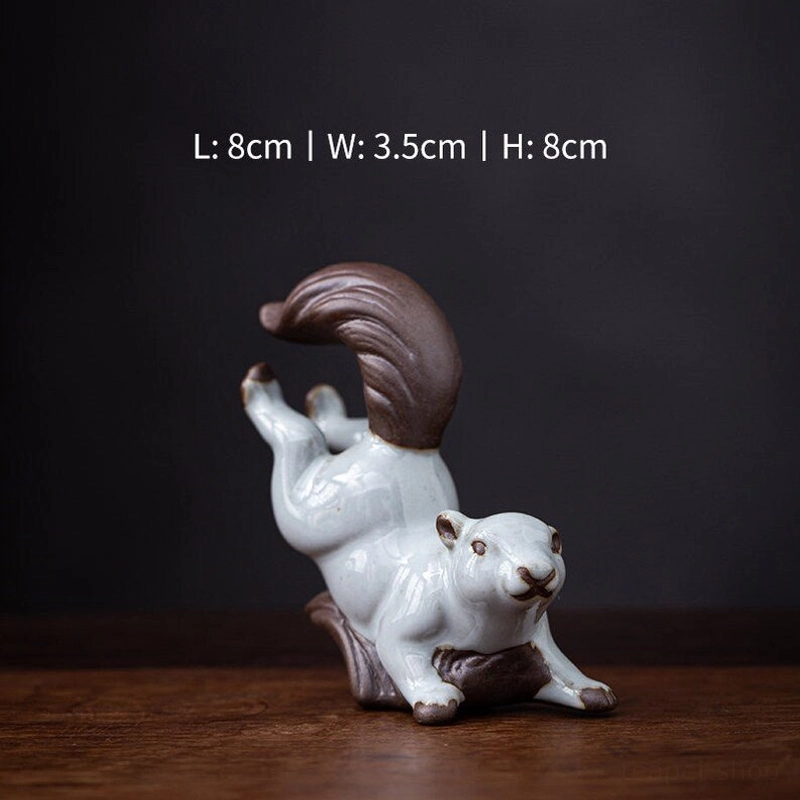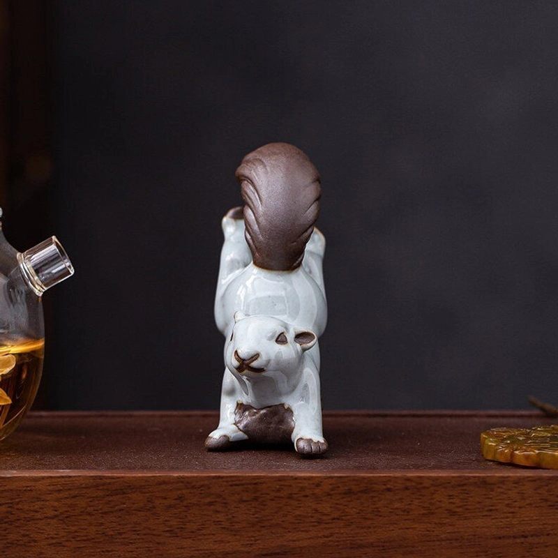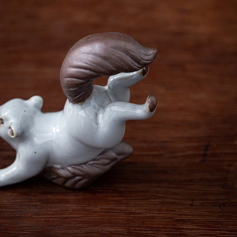 This lifelike squirrel tea pet blends whimsical natural aesthetics with time-honored Chinese ceramic craftsmanship, working beautifully as both a functional tea accessory and a charming standalone decor piece for any space. Meticulously hand-finished, it captures the playful energy of a wild squirrel for a delightful addition to your collection.