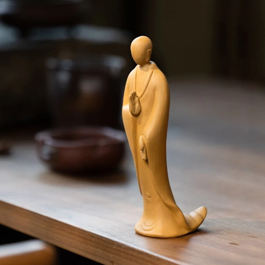 • Handcrafted Minimalist Design: Delicate hand-carved details on robe folds and hands, blending traditional zen culture with modern minimalist aesthetic preferences