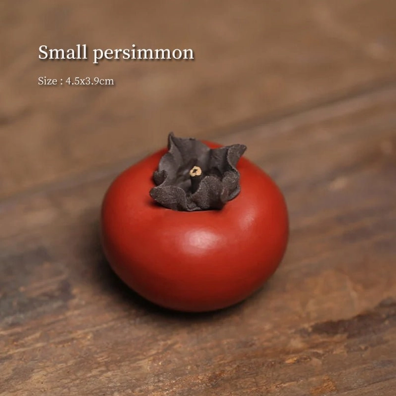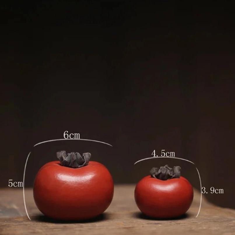 Every detail of this tea pet is meticulously sculpted to match a plump, ripe persimmon: rich warm red for the fruit, detailed dark brown for the calyx, and soft natural texture that feels wonderful to touch during your tea time. This lifelike design adds a cozy, welcoming touch of nature to any tea space or home interior.
