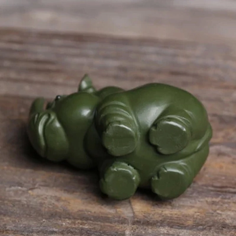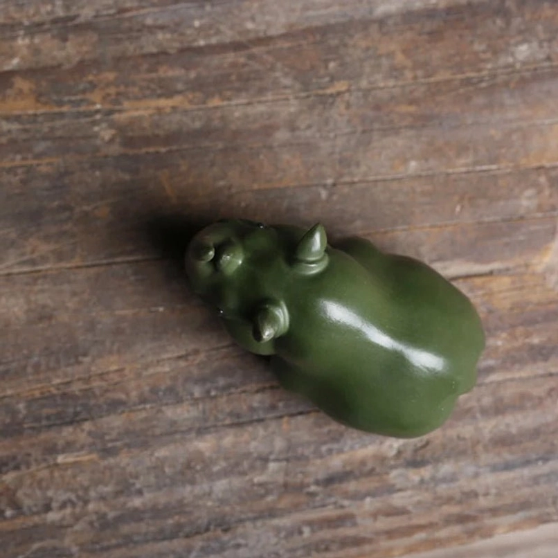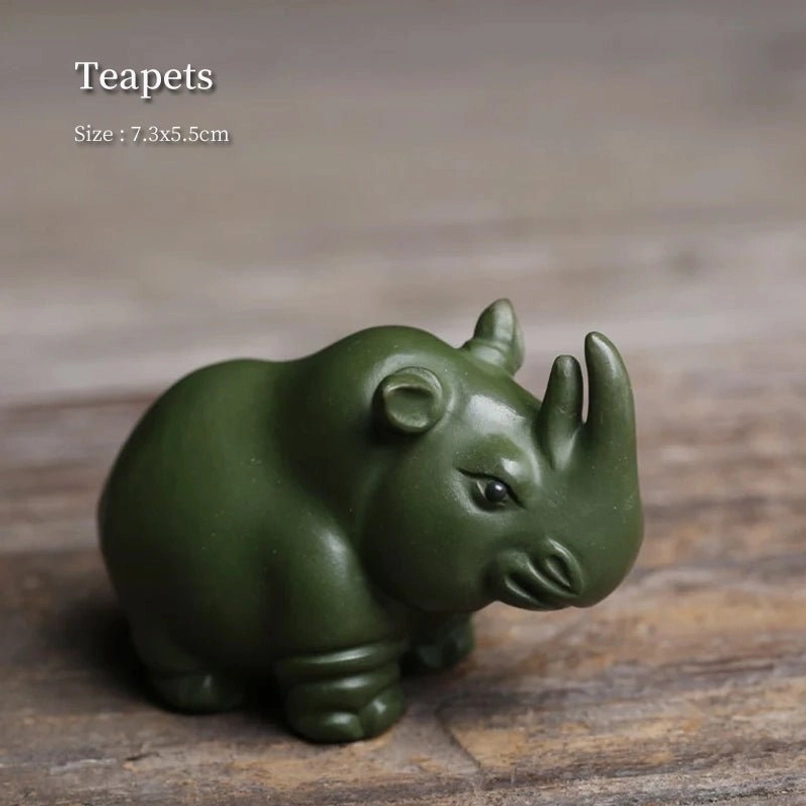 - Artisan Handmade Craftsmanship: Each rhino tea pet is individually shaped and fired by experienced Chinese artisans, with a smooth matte olive green finish that pairs beautifully with wood, ceramic, and bamboo tea ware.