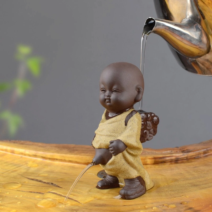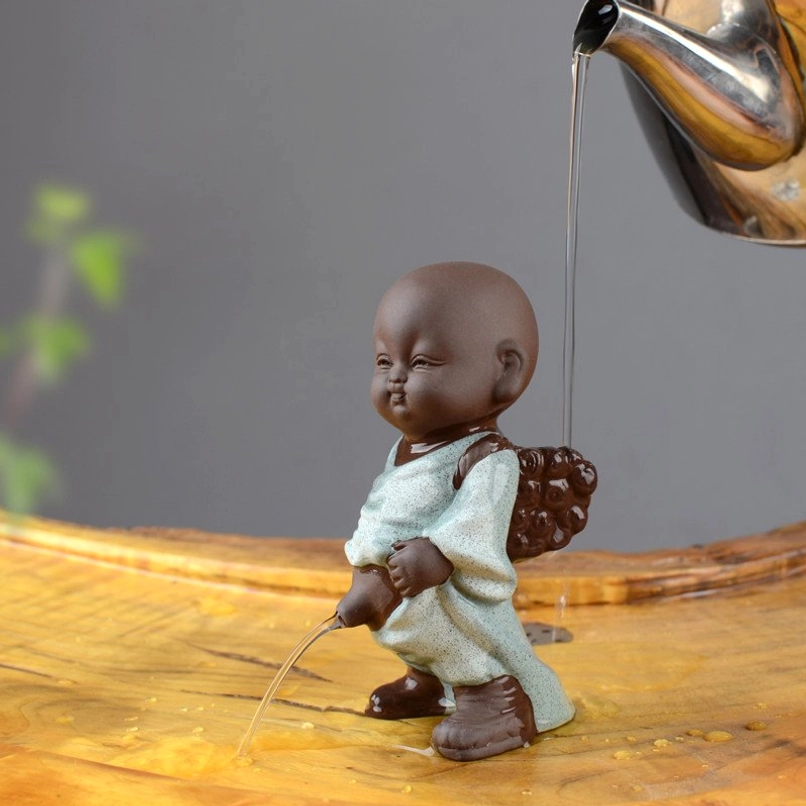 This whimsical peeing boy (or water-spraying little monk) tea pet is a beloved classic interactive tea pet for traditional Chinese gongfu tea ceremonies. Handcrafted from heat-resistant ceramic, it brings lighthearted joy and cultural charm to any tea table. When you pour hot water over it, it gently sprays water — a fun surprise that always delights guests and makes tea time feel special.