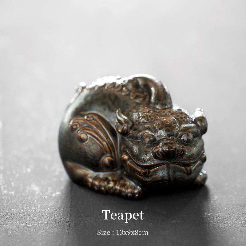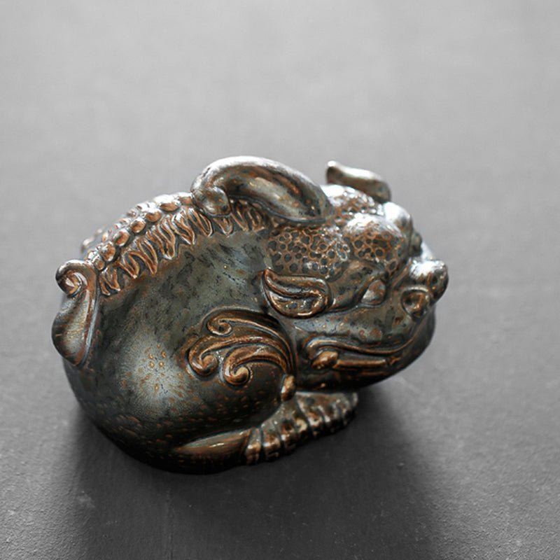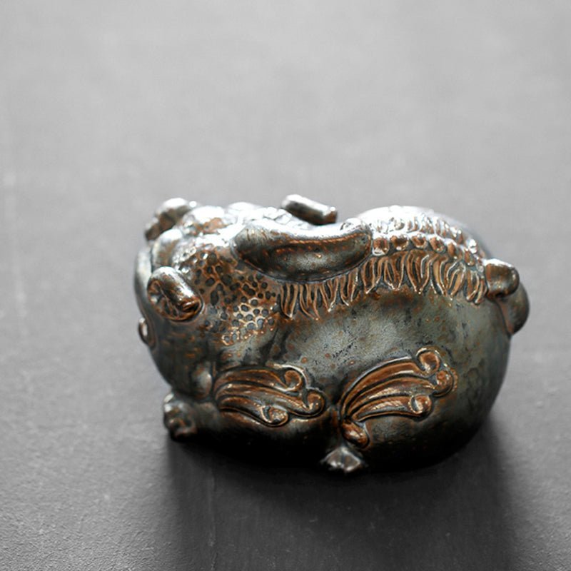 This handcrafted Pixiu tea pet is a perfect fusion of traditional Chinese auspicious culture and tea ceremony art, designed for tea lovers, traditional culture enthusiasts, and anyone seeking unique cultural decorations. Made of high-quality ceramic with special retro kiln-fired finish, it presents an elegant vintage texture similar to aged metal, adding a unique cultural touch to your tea space.