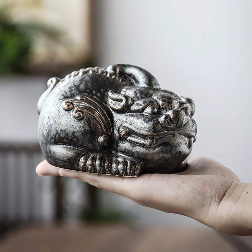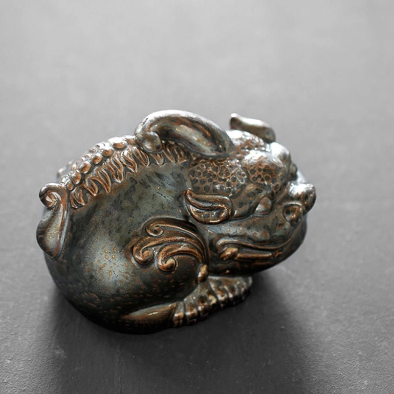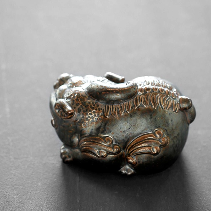 This handcrafted Pixiu tea pet is a charming fusion of thousands of years of Chinese auspicious culture and the serene art of tea ceremony, crafted for tea lovers, traditional culture enthusiasts, and anyone seeking unique meaningful decor. Made of high-quality ceramic with a special retro kiln-fired finish, it boasts an elegant vintage texture that mimics aged oxidized metal, adding a distinct cultural touch to any tea space.