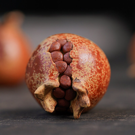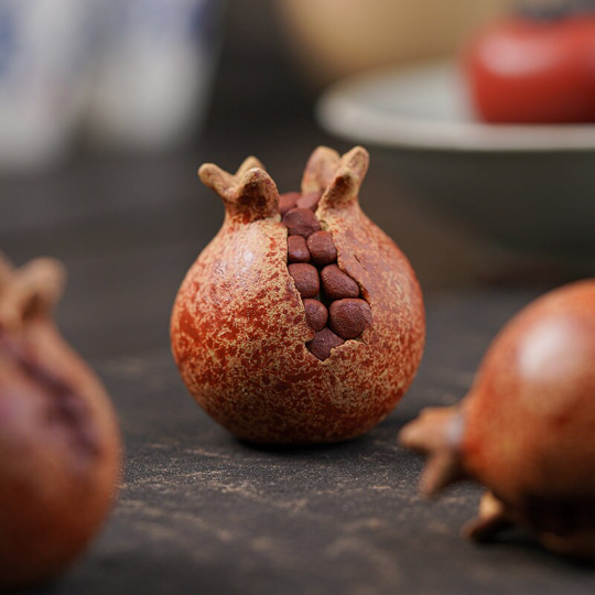 Rooted in thousands of years of Chinese tea and auspicious culture, the pomegranate (shíliu, 石榴) is a beloved symbol of abundance, fertility, family harmony, and thriving fortune. This handcrafted tea pet carries these timeless blessings, making it far more than a decorative piece: it is a tangible expression of good wishes for growing families, successful careers, and joyful gatherings.