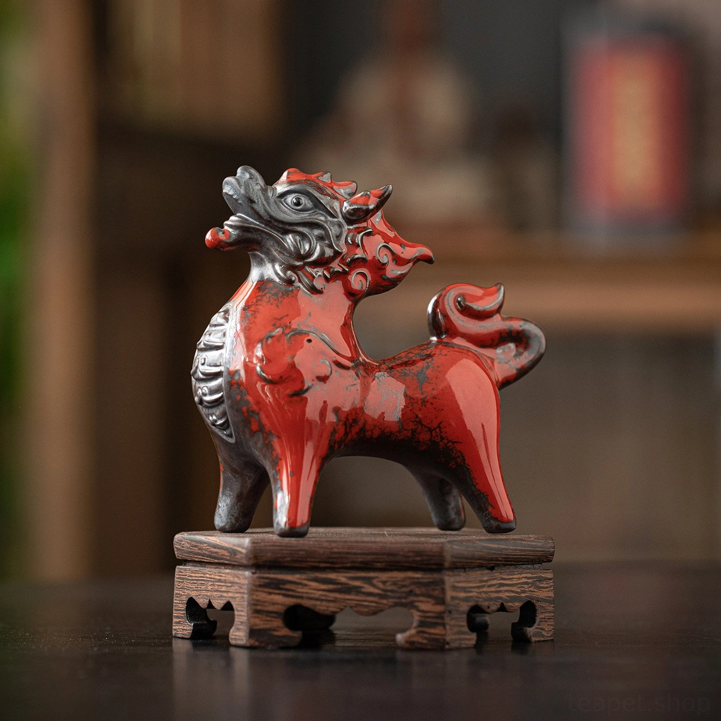 - Fire Qilin: A vibrant fiery red glaze with natural dark gray ink-wash accents, representing passion, energy, and good fortune for career growth and new business ventures.