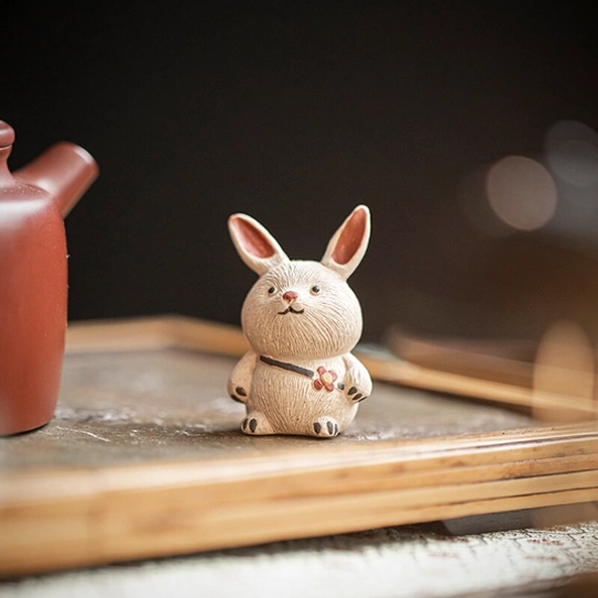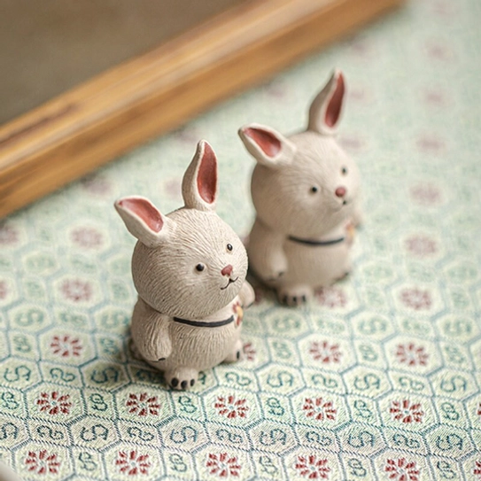 Tea pets (chá chǒng in Chinese) are beloved traditional decorative figurines for Gongfu tea ceremonies, cherished by tea lovers for centuries. This charming set of 2 rabbit tea pets blends playful whimsical design with authentic traditional Yixing clay craftsmanship, adding a warm, cozy personality to any tea ritual or home space.