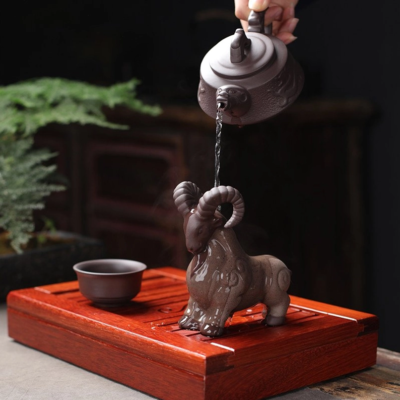 Each goat tea pet is carved by hand from authentic Yixing zisha (purple clay), sourced directly from Jiangsu Province, China—where zisha clay has been prized for tea ware for over 1,000 years. This porous natural clay has unique properties that make it perfect for tea pets: