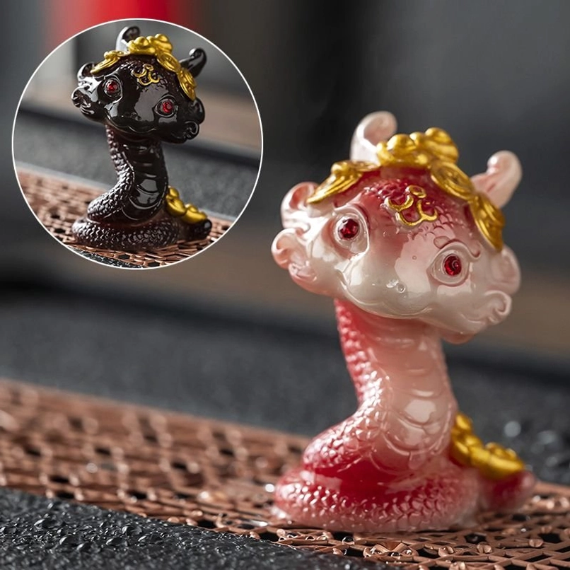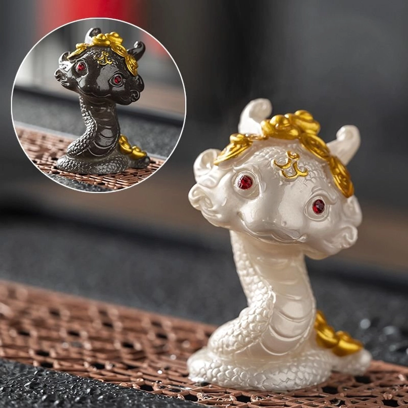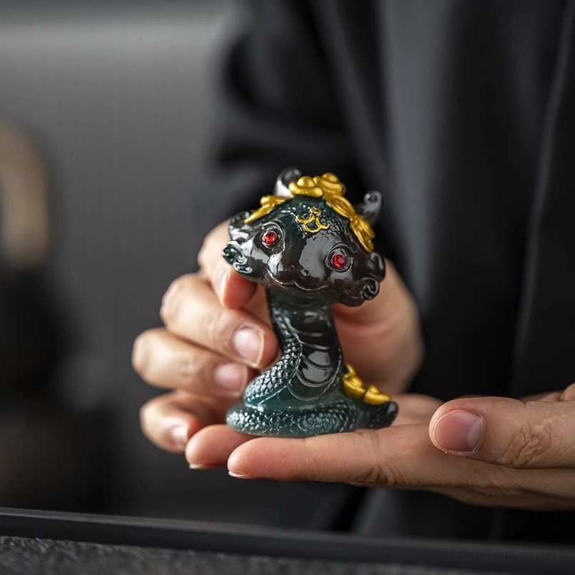 2025 is the Year of the Snake in the Chinese zodiac, and snakes hold deep positive symbolism in Chinese culture: they represent wisdom, good fortune, prosperity, and gentle transformation. This specially designed snake tea pet blends mythical Chinese motifs with charming modern styling, featuring ornate gold details and a compact rounded shape that is perfect for hand-fumbling and display.