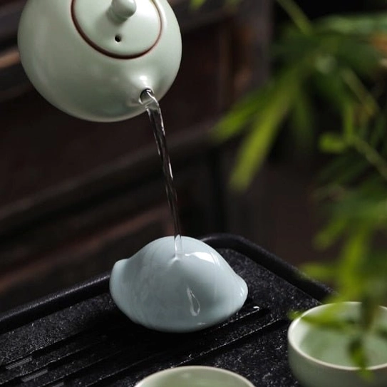 Finished in the classic soft sky-blue celadon glaze that Ru Kiln is famous for, this tea pet features natural crackle patterns. As you pour tea over it with each use, the crackles will gradually absorb tea and develop unique tea-stained lines, creating a one-of-a-kind patina that is completely unique to your tea ritual.