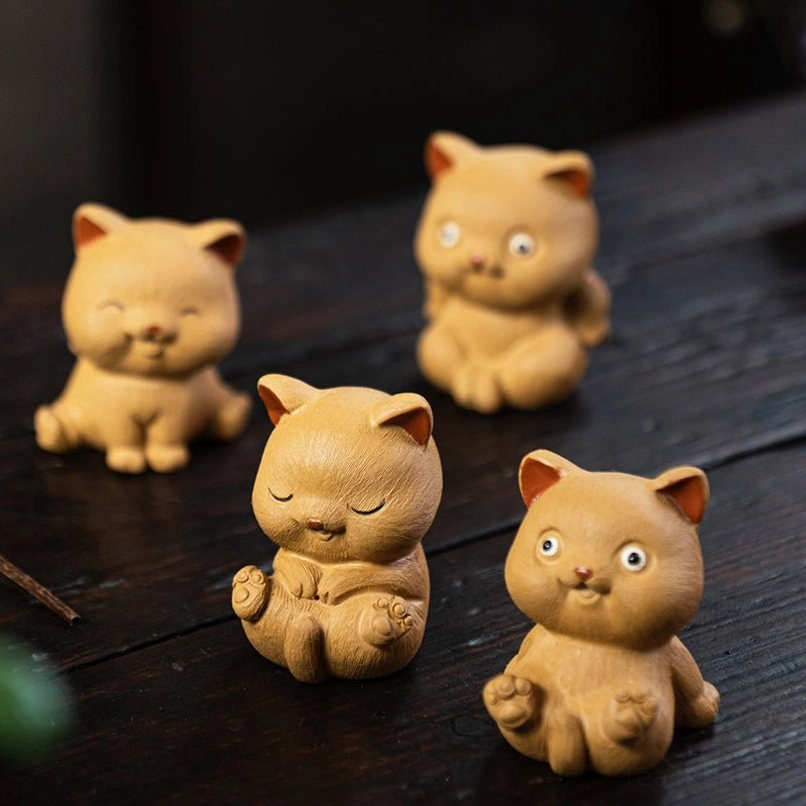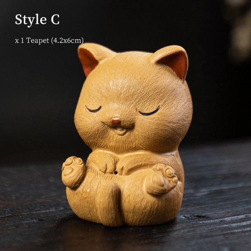 In Chinese culture, cats have long symbolized good fortune, warmth, and gentle luck. A cute kitten tea pet on your tea table is believed to bring calm, happy energy to your home, while its playful design softens busy daily routines. For tea lovers, collecting tea pets is a beloved tradition: over years of use, your purple clay tea pet develops a unique, glowing patina that becomes more personal and beautiful with time.