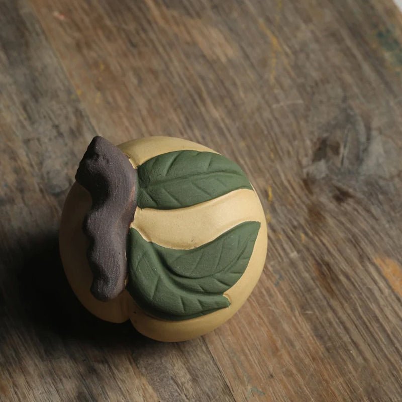 Crafted from authentic Yixing purple clay, this peach-shaped tea pet combines traditional Chinese tea culture with exquisite craftsmanship, making it a delightful addition to your tea table, home decor, or collection.