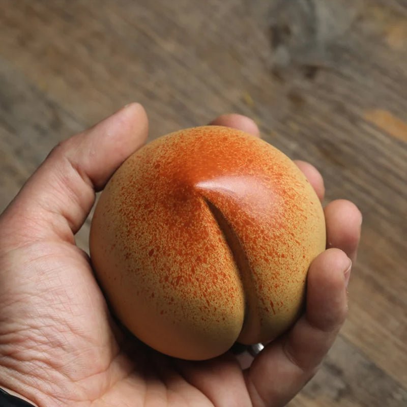 - Ultra-Realistic Craftsmanship: Meticulous hand-painted details including natural color gradient from soft peach yellow to blushed red top, textured fruit surface, veined green leaves and natural brown stem, true to the look of a fresh peach