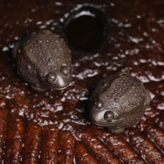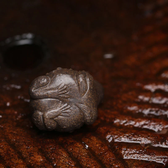 Rooted in centuries-old Chinese tea culture, the tea pet (chá chóng in Mandarin) is a beloved small decorative piece for tea trays, designed to be nurtured alongside your daily tea preparation. This realistic toad figurine is crafted from authentic Yixing zisha (purple clay), a material celebrated for its porous nature and deep connection to Chinese tea traditions.