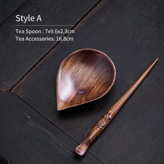 Premium natural black walnut tea scoop & multi-functional tea pick set for traditional gongfu tea ceremony. Hand-polished, eco-friendly, perfect for tea lovers and daily brewing.