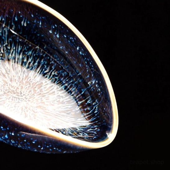 Premium one-of-a-kind handcrafted kiln-changed ceramic tea scoop (cha He) for traditional Chinese Gongfu tea ceremony. Perfect for displaying loose leaf tea & multi-use small storage.