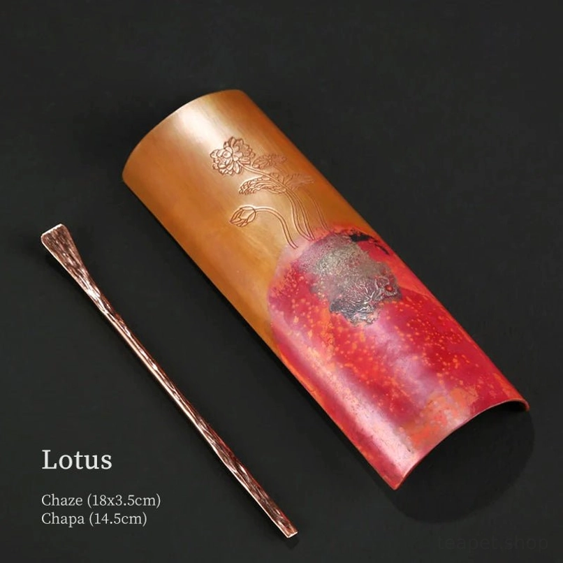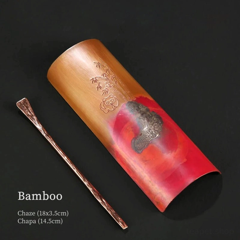This premium handcrafted tea set combines traditional Chinese tea culture with exquisite metalworking craft, featuring a tea scoop (chaze) for measuring loose leaf tea and a matching tea pick (chapa) for tea preparation. Crafted from solid purple copper with a delicate silver plating finish, it adds timeless elegance and cultural charm to any tea ritual.